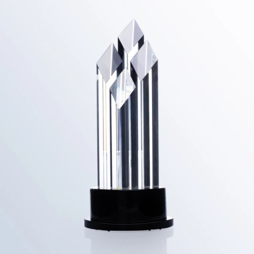 Four crystal diamond towers rise from a black crystal base, representing a a group apart from the rest. This piece is a solid representation of what recognition should be.