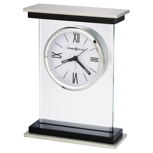 Elevate your workspace or home décor with this striking modern mantel clock, featuring a sleek glass panel design framed by brushed silver and black metal accents. The minimalist construction creates a floating effect, allowing the bold white dial to stand out beautifully within the clear glass surround.
